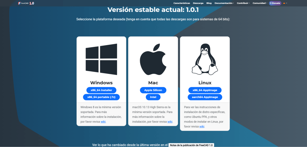 Descarga e instalación de FreeCAD 1.0.1